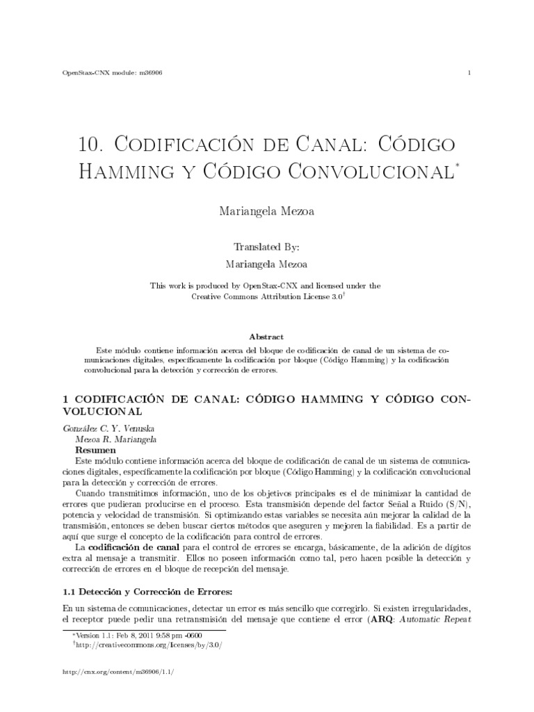 Códigos cíclicos o Códigos convolucionales o Códigos basados en combinación. Modulación codificada. Aplicaciones de códigos de canal. Article007upcommons. Proyecto_Borja_A_Feitoupcommons. Puede definirse una tercera clase. Este capitulo trata con codigos convolucionales. El capitulo presento los fundamentos de bloques de.